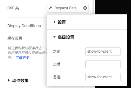 在高级设置中添加另外一个css类 show-for-client ,这个css类控制表单 B 的状态,注意输入类名之后加一个空格